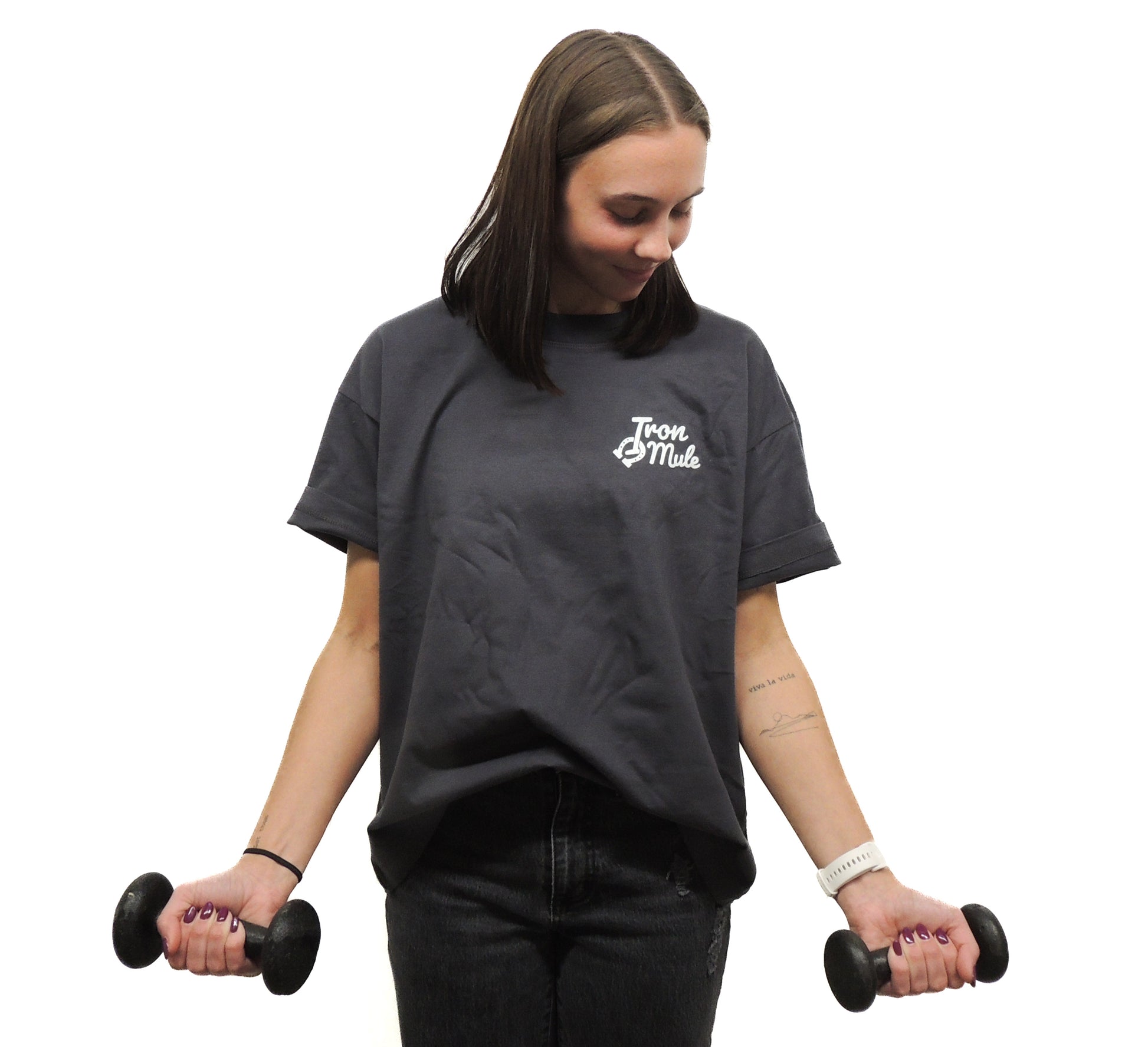 - Coverstitched sleeves, side seams, and bottom hem